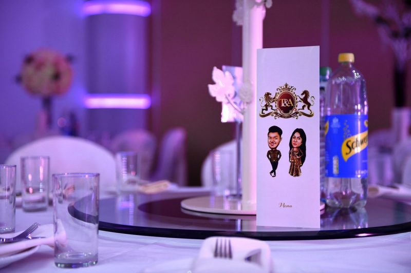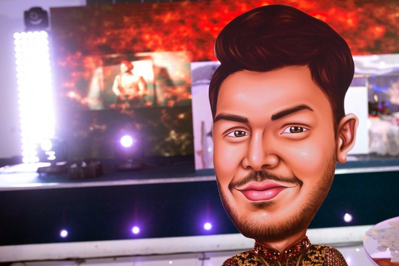 Stylish weddings have the most effect on people, especially when they are done minimally. People will always remember your big day for how classy and glamorous it was. So, if you are looking to have a stylish yet minimal wedding, Tar and Aman’s wedding day was the perfect event. On their big day, we designed a stunning pieces of art and made the outfits of their weddings into caricatures. This was featured as the main f ocal point of the wedding and was displayed on big screens animated with a custom logo that complimented the lighting and décor.